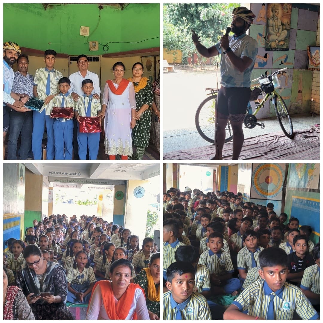 My dream and motto of this ride is spread awareness for climate change and sustainability to save world🌍 for future generations so I spread the awareness to young generation ,students, faculties and staff.i did it during my ride.Â
