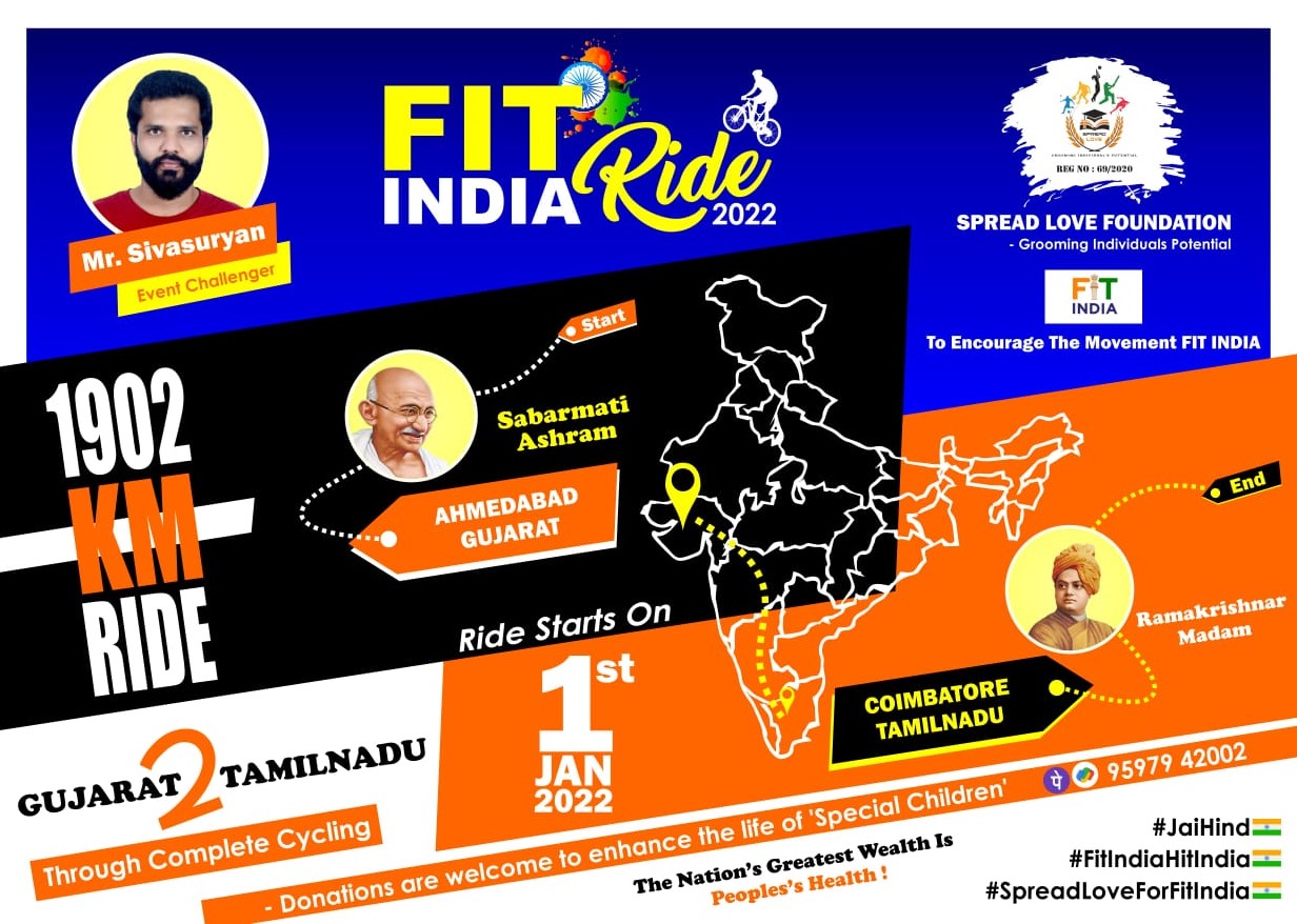 1.Rided 1902 km from Ahmedabad, Gujarat to Ramakrishna mission, Coimbatore, Tamilnadu.