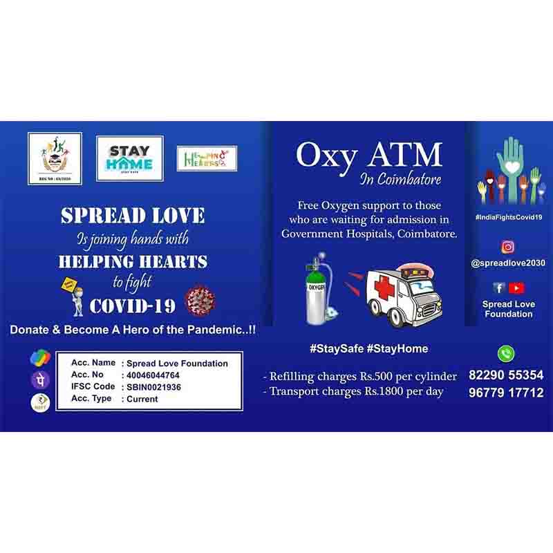 Spread Love foundation was joined hands with *Helping Hearts foundation to fight Covid-19 By Providing free Oxygen support to those who are waiting for admission in Govt. Hospitals Coimbatore. It was so well pleased to been a part of somebody’s life savior. Its all possible by generous support of spread love foundation’s contributors and supporters.